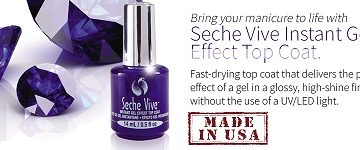 Nước bóng SECHE VIVE với độ bóng được cải tiến hơn từ dòng Seche Vite cũ và độ nhanh khô cực tốt. Ngoài việc tăng độ bóng, độ nhanh khô, sản phẩm còn giúp cho lớp sơn dầy hơn như bạn đang dùng sơn GEL.