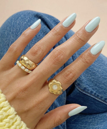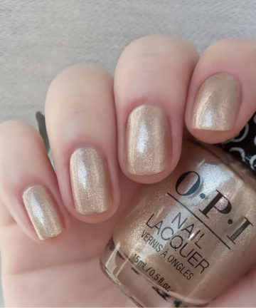 - HRL10 có tông vàng kim vừa phải, chất nhũ mịn lấp lánh mà bạn có thể sơn cả bộ hay trang trí nhấn ngón kèm với sơn màu sẽ rất sang.