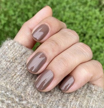 - Màu nâu trầm với chất sơn nhũ mang đến cho nàng sự sang trọng.